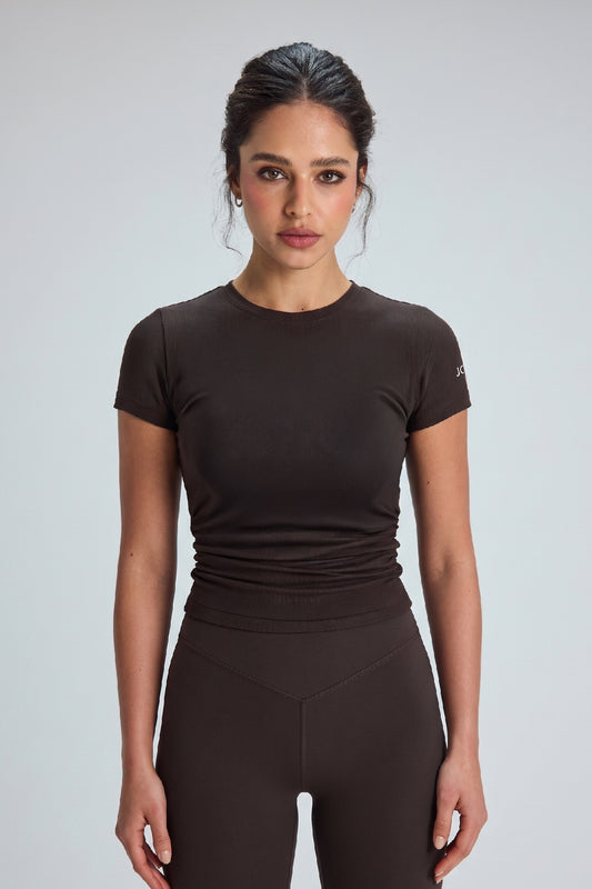 Polera ajustada de manga corta_Espresso