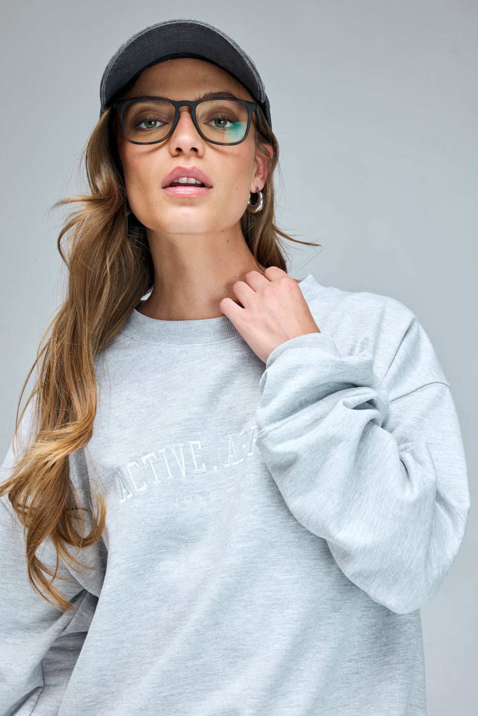 Poleron Crew Neck Bordado Active Apparel_Gris Blanco