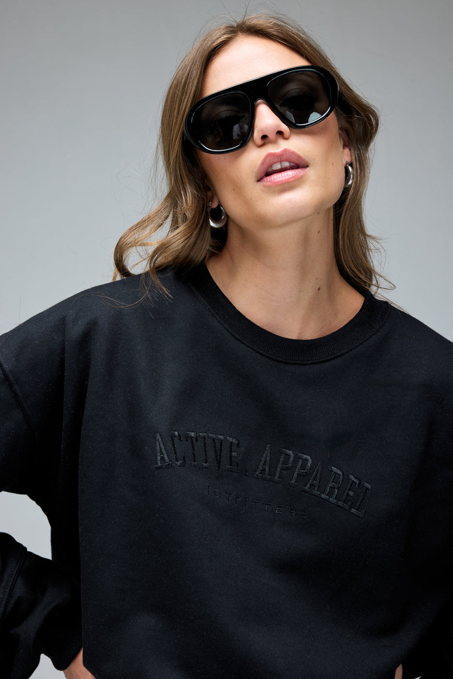 Poleron Crew Neck Bordado Active Apparel_Negro