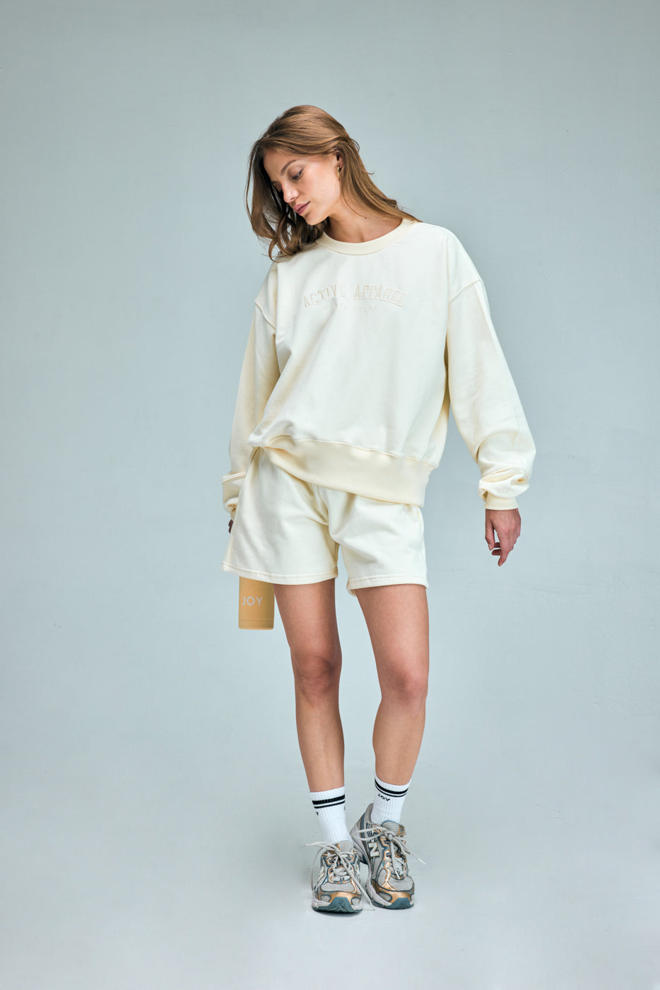 Tiro medio con cintura elástica en tejido combinado a tono con su Poleron Crew Neck Bordado Active Apparel.